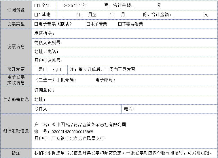 3.填表订阅:请完整填写订阅单,连同汇款转账凭证(可另附页)发送邮件至gaojian62220815@126.com,即完成订阅。